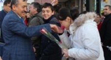Başkan Tutal, Hükümet Anıtı önünde başlayan kutlama programı kapsamında tören alanında bulunan öğretmenlere günün anısına çiçek takdim etti.