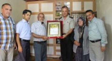 Seydişehir’e bağlı İncesu Mahallesinde ikamet eden şehit Jandarma Uzman Çavuş Erol’un babası Abdullah Erol’a şehitlik beratı Konya İl Jandarma Komutanı Albay İsmet Cansaran tarafından takdim edildi.