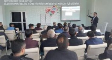 Seydişehir Belediyesi tarafından kurum içi veya kurumlar arası yazışmalarla ilgili bütün süreçlerin bilgisayar ortamında yapılmasını sağlayan Elektronik Belge Yönetim Sistemi (EBYS) ve Saklama Süreli Standart Dosya Planı hakkında personellere yönelik hizmet içi eğitim programı düzenlendi.