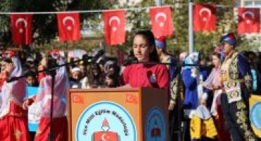 Kaymakam Aydın Erdoğan ve Belediye Başkanı Mehmet Tutal’ın halkın ve öğrencilerin bayramını kutlamasının ardından başlayan törende, günün anlam ve önemine ilişkin konuşmayı yapan