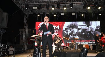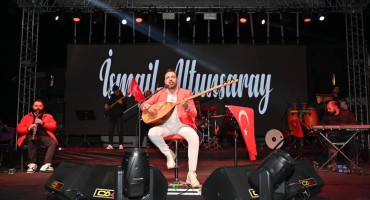 Cumhuriyet Bayramının 101. yılını kutlamanın coşkusunu yaşadığını söyleyerek sahne alan Türk Halk Müziği Sanatçısı İsmail Altunsaray seslendirdiği türküleriyle sevenlerine unutulmaz bir gece yaşattı.