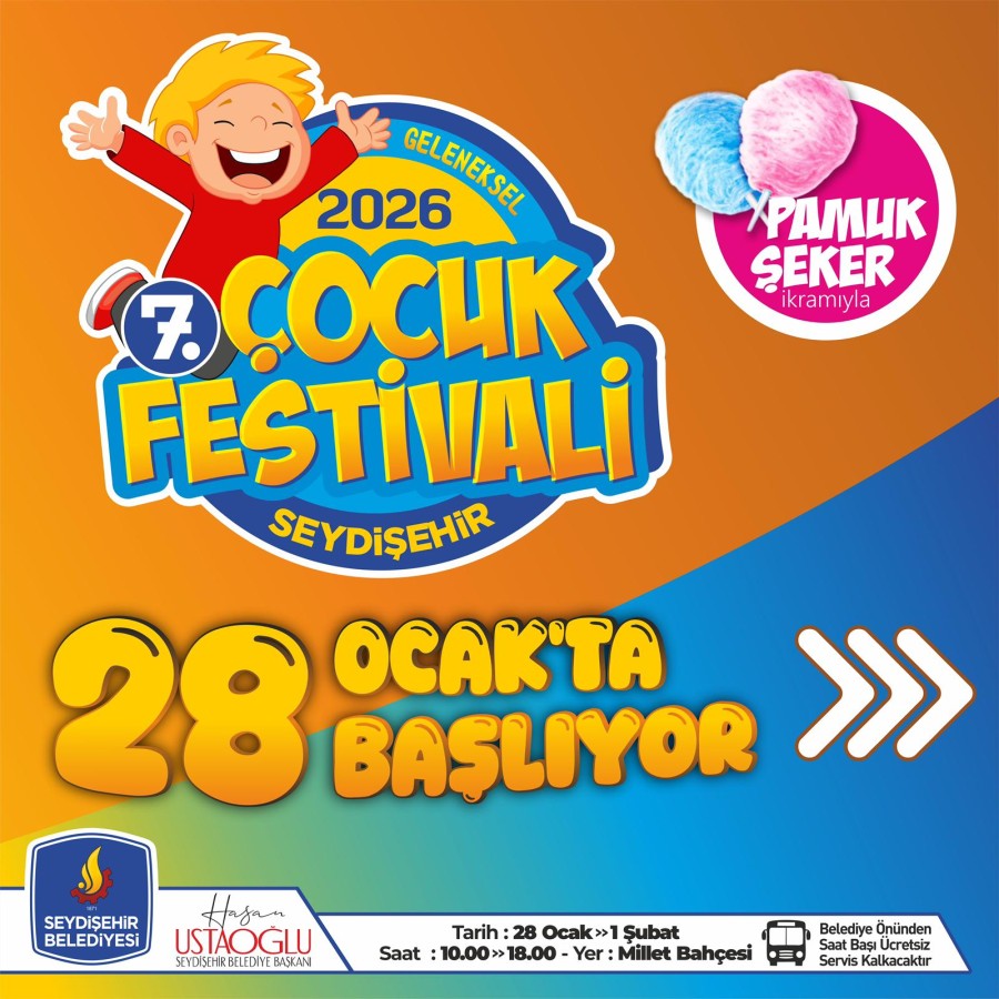 Seydişehir Belediyesi tarafından düzenlenen 7. geleneksel çocuk festivali 28 Ocak Çarşamba günü başlıyor.