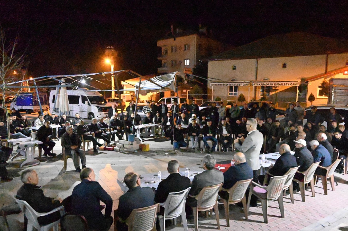 Başkan Ustaoğlu. Ortakaraören mahallesinde Teravih namazı sonrasında vatandaşlarla bir araya gelerek talep ve önerilerini dinliyor.