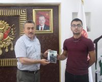 Mardin Sosyal Bilimler Lisesi öğrencisi Baran Özdemir, 3 yıllık çalışması sonucunda çıkardığı ilk şiir kitabını Belediye Başkanı Mehmet Tutal'a imzalayarak hediye etti.
