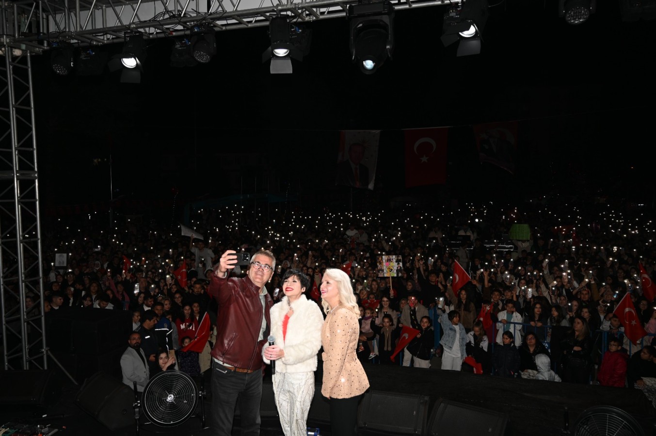 Cumhuriyet Bayramının 102. yılını kutlamanın coşkusunu yaşadığını söyleyerek sahne alan Sanatçı Aydilge, alanı dolduran binlerce kişiye seslendirdiği parçalarla sevenlerine unutulmaz bir gece yaşattı.